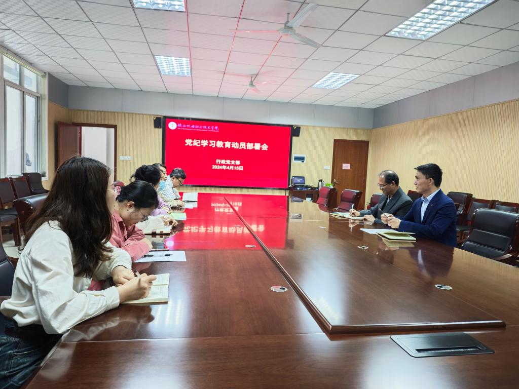 4月15日下午,行政党支部在蟠龙校区图书馆二楼会议室召开党纪学习教育动员部署会,校党委书记伊逊智出席会议,支部书记赵争东主持会议,支部全体党员参加了会议。