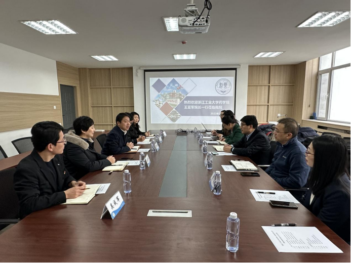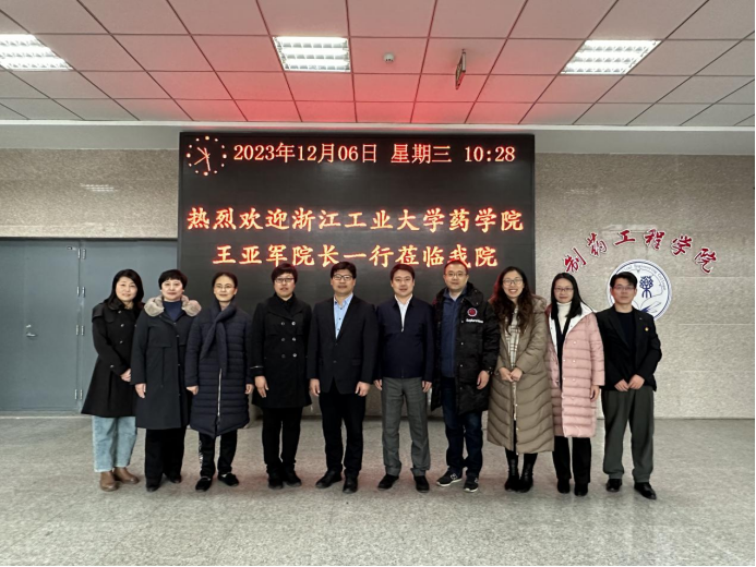 12月6日,浙江工业大学药学院院长王亚军、副院长谢媛媛、副院长李行诺、学院党委副书记乔婧芳、学科办副主任楚楚、学院办公室主任高丽萍一行6人来到米兰官网进行访问,就推动双方开展绿色制药协同创新进行调研。学院院长刘洋、院党委书记李哲、药学院副院长赵云丽、有机教研室教师任旭红、药物化学教研室教师吴成军参加了调研座谈。