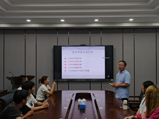 随后,制药工程学科、化学学科、化学工程与技术学科老师及学生转至各学科分会场。药物化学学科负责人刘丹教授、制药工程学科负责人刘洋教授、化学学科负责人胡春教授和化学工程与技术学科负责人侯晓虹教授分别在各会场面向四个学科的研究生新生具体而详实地介绍了各个学科的发展现状、导师情况、培养方案、科研成就等内容,让学生对所学专业有了更深入的了解,对研究生生活有了更清晰的规划。