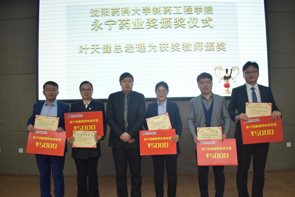 接下来举行隆重的颁奖仪式,永宁药业常务副总经理李建文为获得永宁药业“优秀本科生奖”、“优秀硕士生奖”、“优秀博士生奖”、“体育专项奖”的学生颁奖。永宁药业总经理叶天健为“工程教育认证”团队、“环境科学”团队、“学生党建工作”团队颁发“永宁药业优秀团队奖”;为刘洋等六名优秀中青年教师颁发“永宁药业优秀中青年教师奖”。