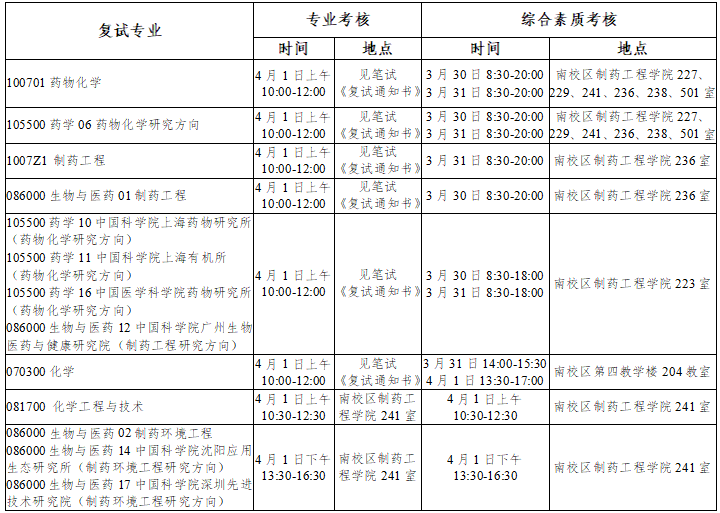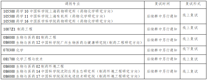 调剂考生复试拟定在4月8日以后,具体安排以制药工程学院各招生学科通知为准。
