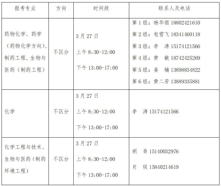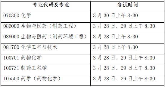 1.考生报考专业代码和专业名称为: 100701药物化学、105500药学【药物化学研究方向】、1007Z1制药工程、086000生物与医药【制药工程】。(具体复试内容见附件《米兰milan官方网站2022年药物化学、制药工程学科硕士研究生复试实施细则》)