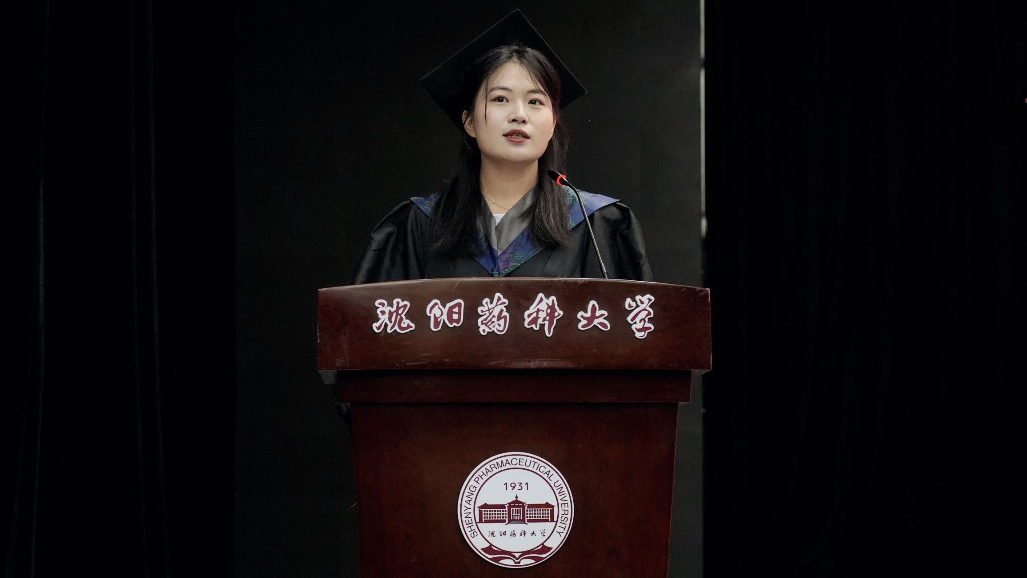 54期校友、辽宁海思科制药有限公司总经理梁勇作为校友代表发言。他回顾了在沈药度过的美好求学时光,分享了工作后的经历和感悟,毕业季是人生的一个重要里程碑,也是开始新旅程的起点,走入社会后,同学们将面临和校园中完全不同的生活。他鼓励毕业生们勇于拼搏,敢于尝试,在未来的道路上勇往直前,不断追求梦想,实现自己的价值。