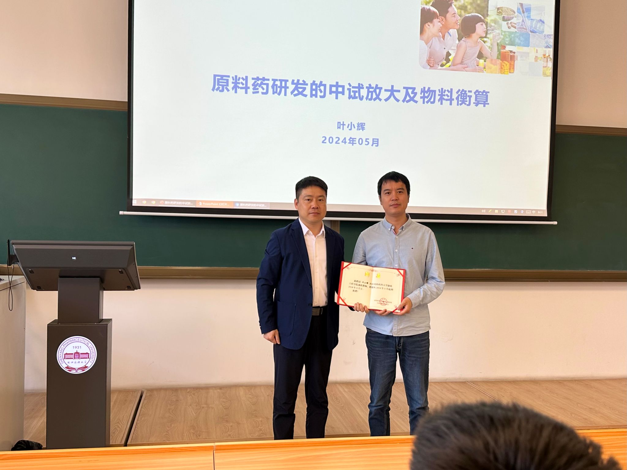 5月28日,米兰milan官方网站聘请上海医药集团(本溪)北方药业有限公司高级工程师叶小辉为兼职教师,并给88K制药工程专业的同学们进行《化学制药工艺学》课程授课,学院院长刘洋、副院长刘丹共同聆听了课程。