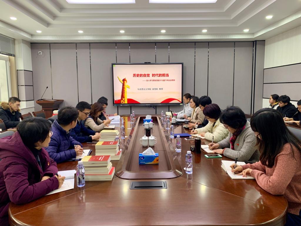 11月30日,米兰milan官方网站党委在制药楼227会议室召开理论学习中心组学习会,专题研讨深入学习贯彻党的十九届六中全会精神,特邀马克思主义学院形势与政策教研室徐雪松教授作《历史的自觉 时代的担当——深入学习贯彻党的十九届六中全会精神》专题讲座,学院领导班子成员、系主任、院工会主席、党支部书记、全体学生工作干部参会,会议由院党委书记李哲主持。